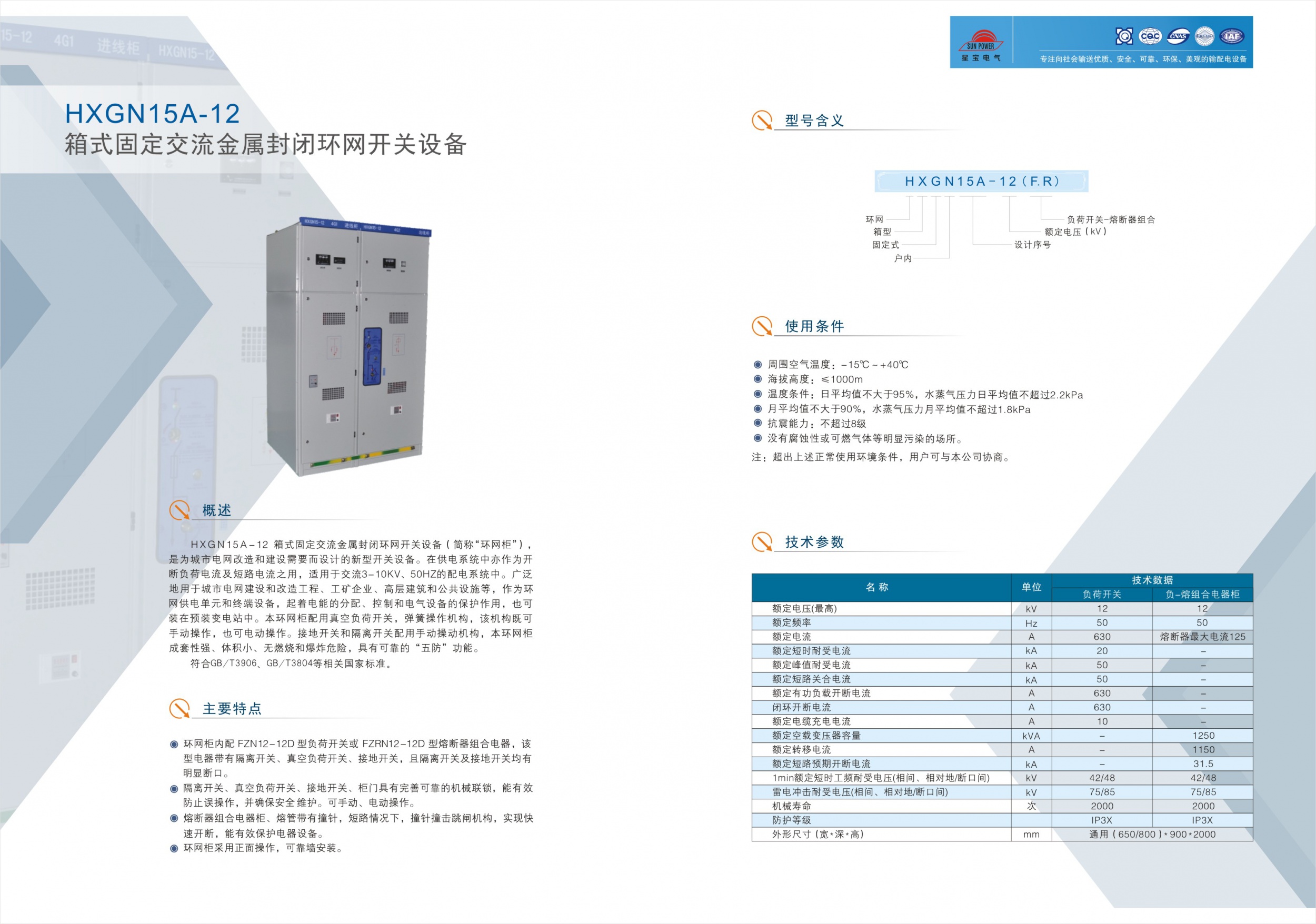 HXGN15A-12型(xing) 箱(xiang)式固定(ding)交(jiao)流(liu)金屬封(feng)閉(bi)環網(wang)開關(guan)設(she)備
